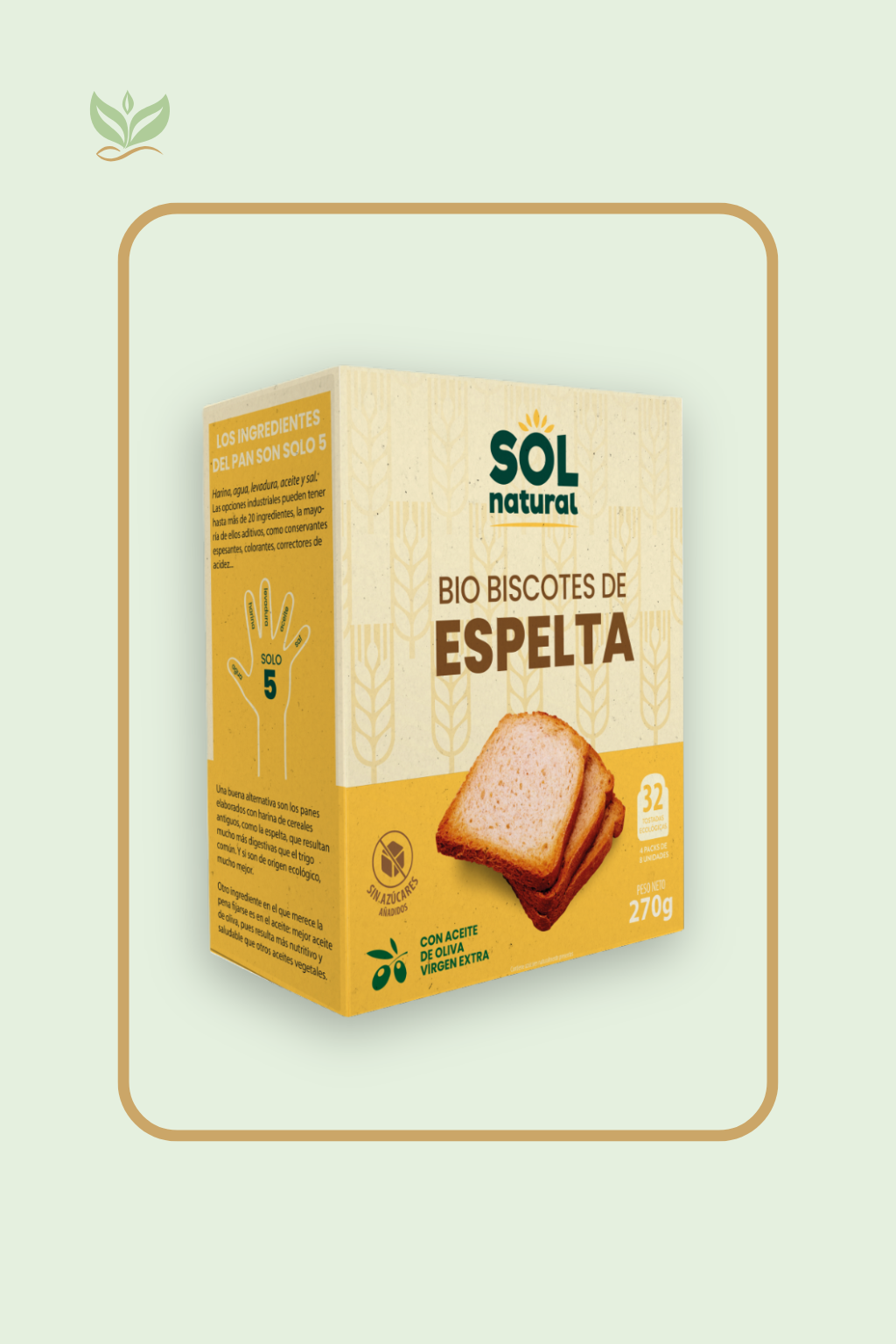 Los Biscotes de Espelta Bio SOL NATURAL son una deliciosa alternativa al pan tradicional, elaborados con harina de espelta procedente de cultivo ecológico. Su textura crujiente y su sabor suave los convierten en la base perfecta para acompañar tanto opciones dulces como saladas.