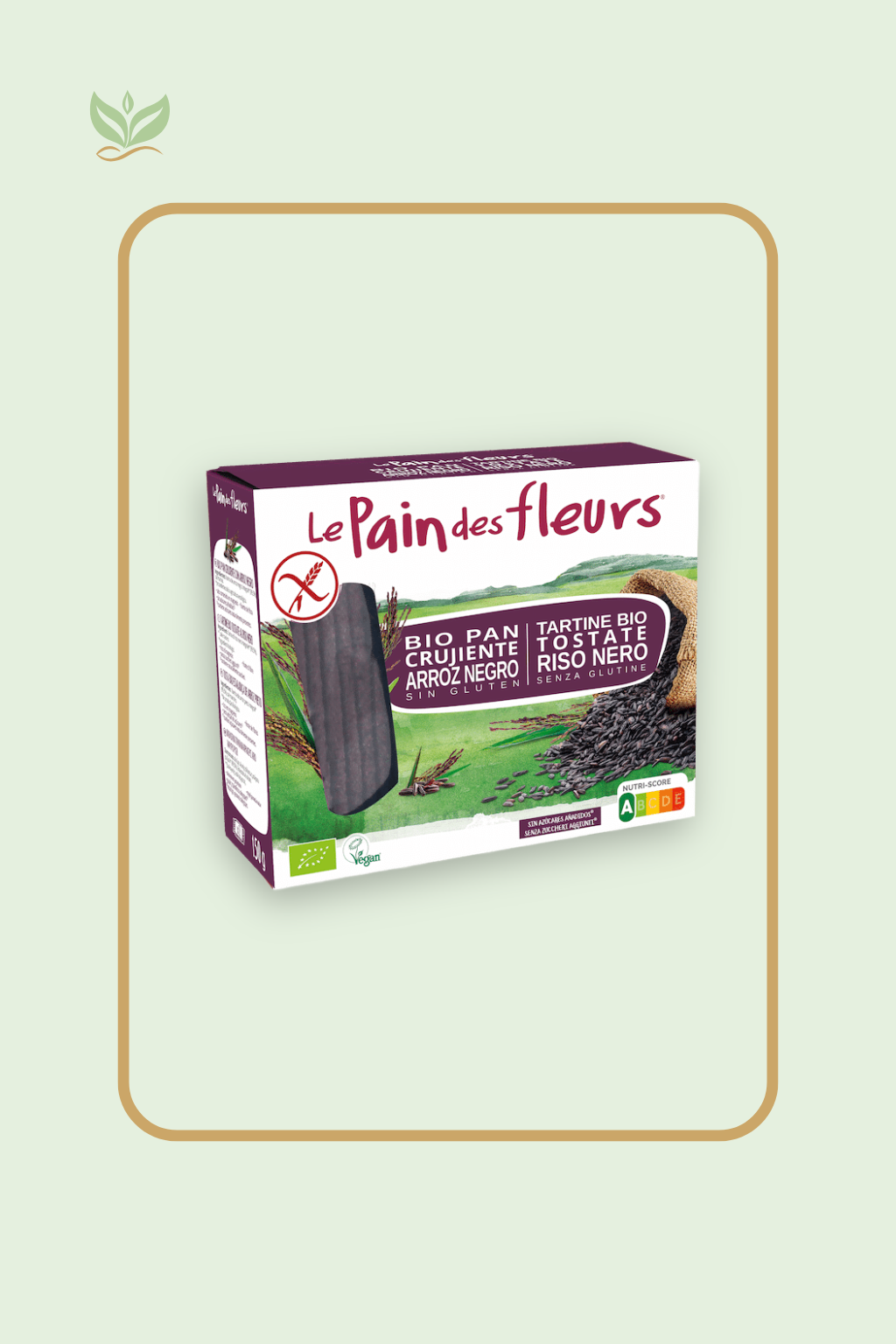 Los Cracker de Arroz Negro LE PAIN DES FLEURS destacan por su original color oscuro y su sabor suave con notas de cereal tostado. Elaborados sin gluten, sin levadura y sin aditivos, son una opción saludable y moderna para quienes disfrutan de snacks ligeros y naturales. Perfectos para combinar con aguacate, hummus o cremas vegetales, aportan un toque sofisticado a cualquier aperitivo.