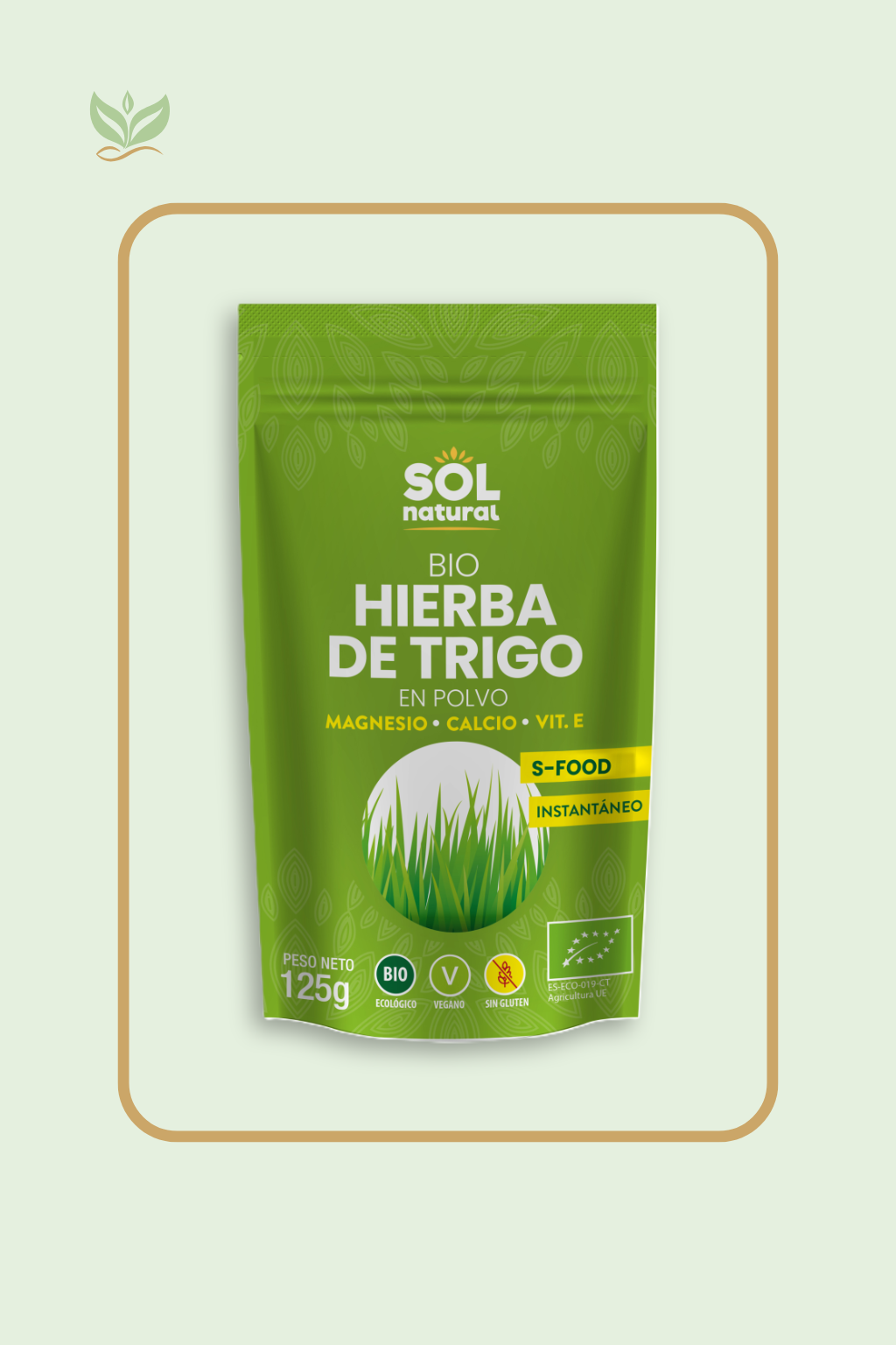 La Hierba de Trigo en Polvo SOL NATURAL se obtiene a partir de brotes tiernos de trigo ecológico (Triticum aestivum), cuidadosamente deshidratados a baja temperatura para conservar todos sus nutrientes. Este superalimento destaca por su alto contenido en clorofila, antioxidantes, enzimas, hierro, calcio y vitaminas del grupo B, que ayudan a depurar el organismo, reforzar el sistema inmunitario y aportar energía natural.