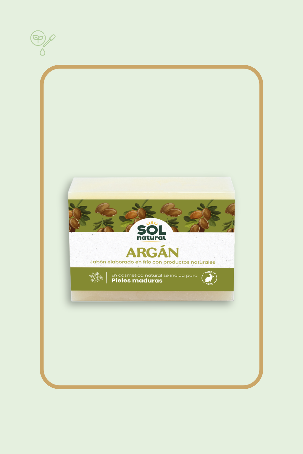 Su base de aceites vegetales naturales limpia suavemente sin alterar el equilibrio cutáneo, aportando una agradable sensación de suavidad y bienestar. Ideal para pieles secas, maduras o castigadas, el Jabón Argán SOL NATURAL ayuda a regenerar la piel y aporta un aspecto luminoso y saludable, con un delicado aroma natural.