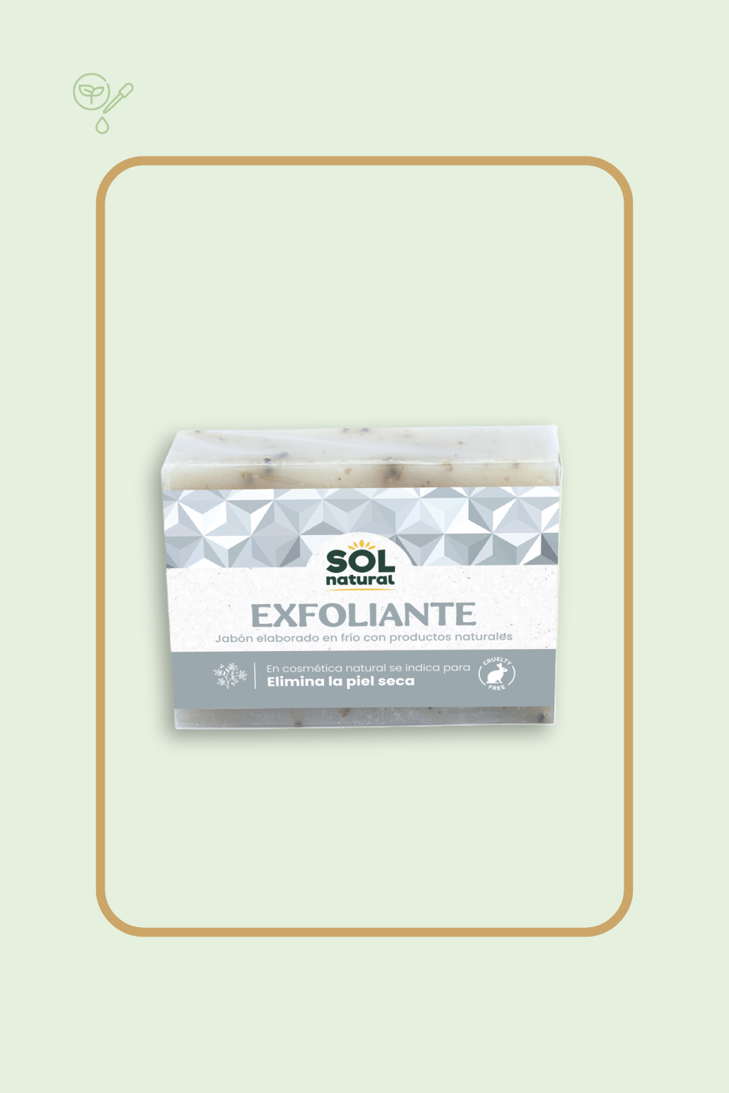 El Jabón Exfoliante SOL NATURAL está elaborado con ingredientes naturales cuidadosamente seleccionados para ofrecer una limpieza profunda y respetuosa con la piel. Contiene partículas vegetales exfoliantes que eliminan células muertas y estimulan la regeneración cutánea, mejorando la textura y el aspecto de la piel desde el primer uso.